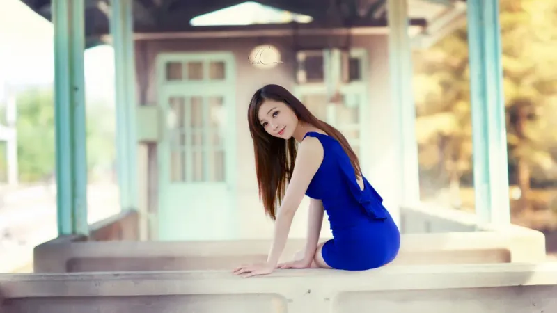 蓝色美女生活写真壁纸第1张