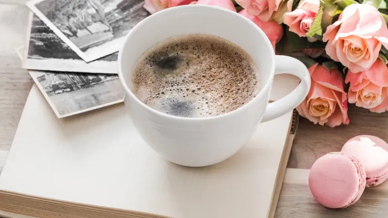 马卡龙与咖啡图片