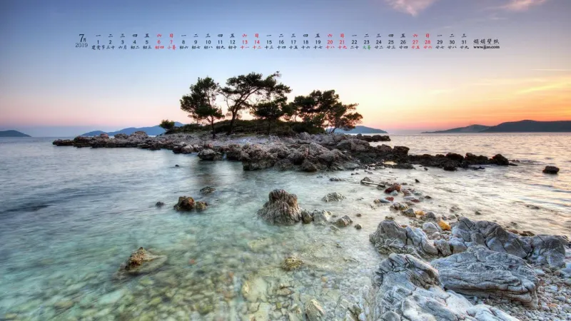 2019年7月日历桌面壁纸,分享一组日历壁纸图片给大家,图中的桌面壁纸壁纸会点缀你的电脑桌面,美化自己的心灵!