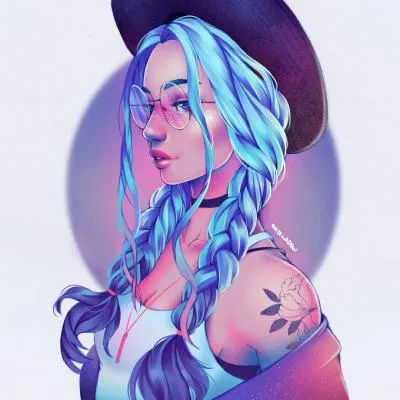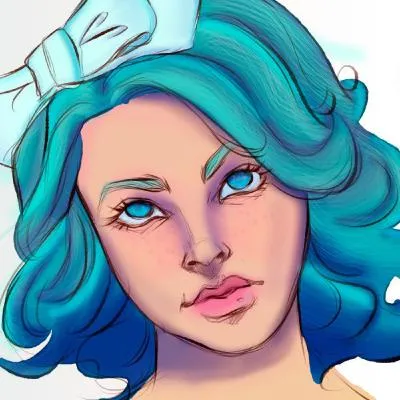 手绘蓝发美女头像