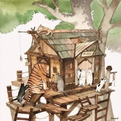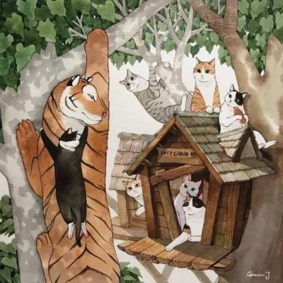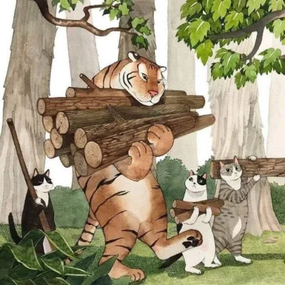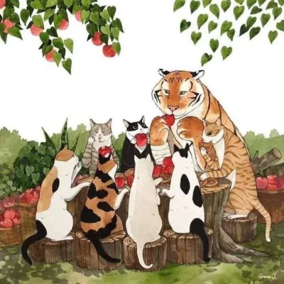 高清温暖的猫和老虎插画头像图片