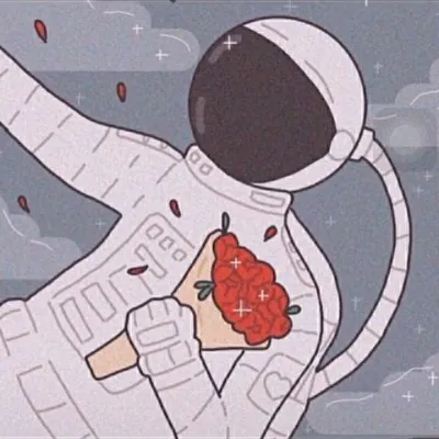 高清捧鲜花的动漫宇航员情侣头像图片
