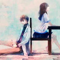 幸福甜蜜的校园系动漫情侣头像一左一右