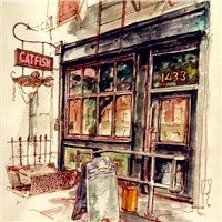 手绘街角风景头像