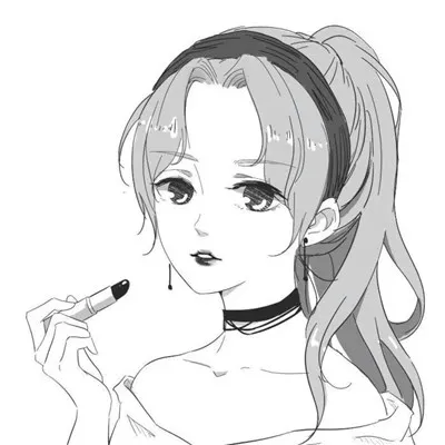 长发头像女生高冷卡通头像黑白图片