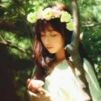 唯美森系头戴花环侧脸女生头像图片